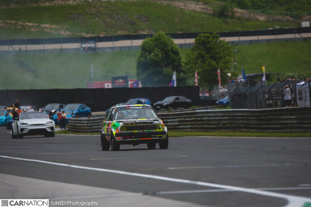Auch auf der Rennstrecke des Motortag 2025 ging es ordentlich zur Sache. Neben klassischen Rundstreckenfahren unterschiedlichster Klassen, gab es ein Kopf an Kopf Beschleunigungsrennen und Driftshows.
